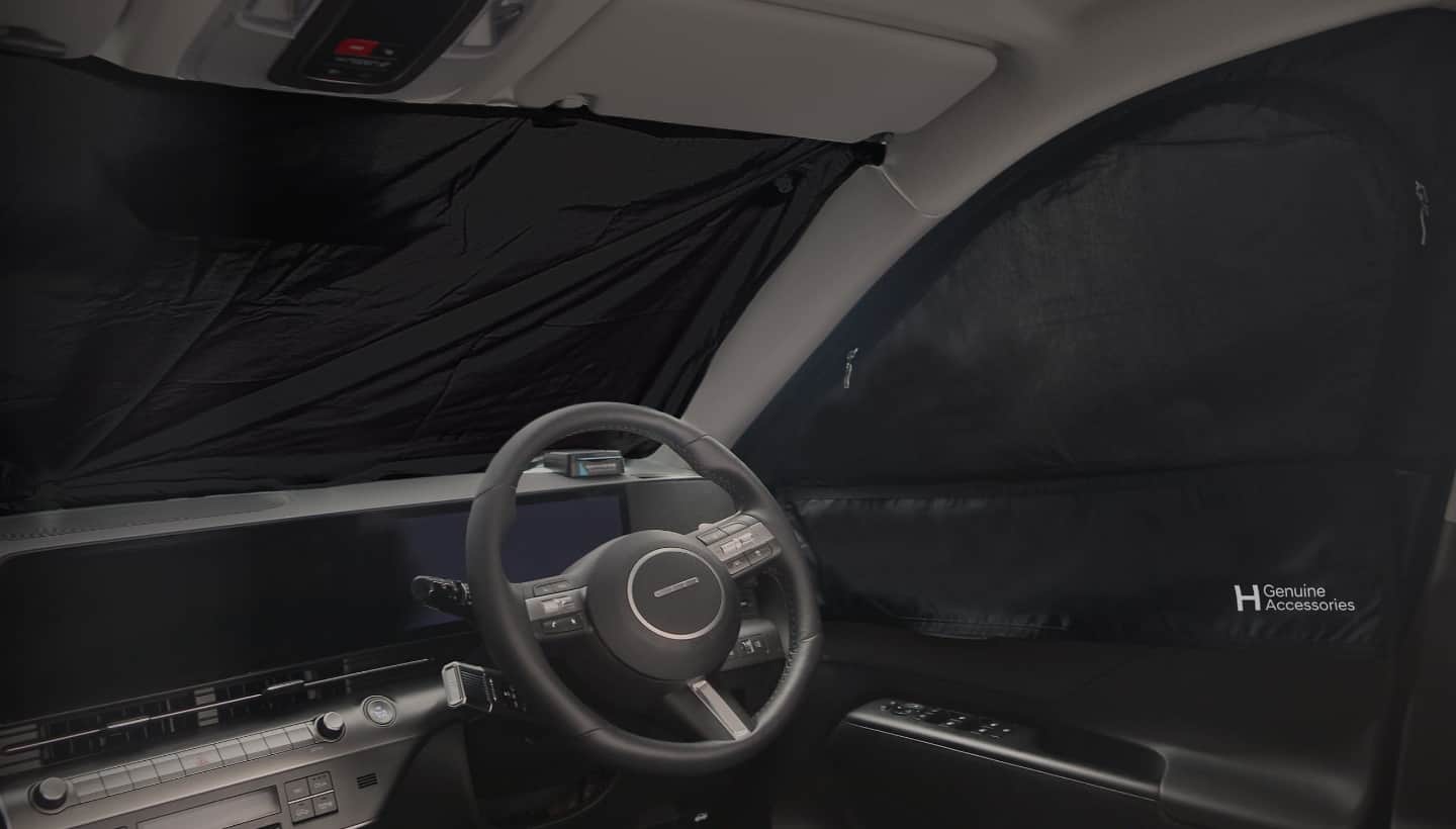 外部の光を遮断し、車の中でリラックスすることができるKONA専用のマルチカーテンです。アウトドアのシーンでは小さな虫の侵入を防ぎ、直射日光を防ぐことも可能です。